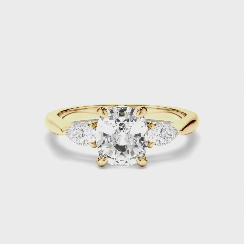 Cushion Cut Diamond Trilogy Engagement Ring with Pear Sides