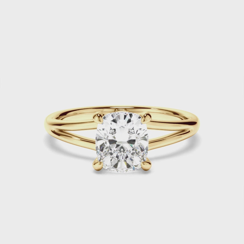 Cushion Cut Diamond Solitaire Hidden Halo Engagement Ring