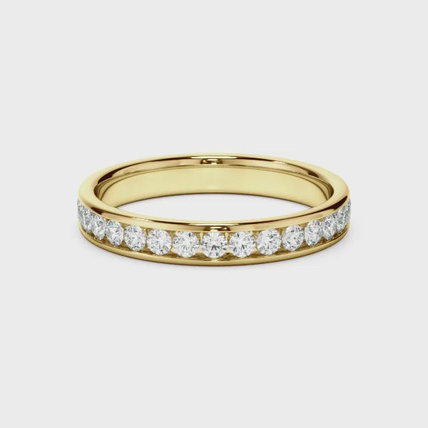 This stunning custom-made wedding ring features a half band of round brilliant cut diamonds set on an 18ct gold or platinum band. Exuding fluidity in its line work, and boasting an elegant silhouette, as with all the pieces in our Bespoke Collection, this piece is made especially for you.