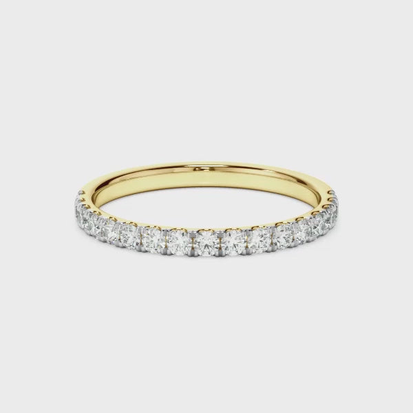 This stunning custom-made wedding ring features a half band of round brilliant cut diamonds set on an 18ct gold or platinum band. Exuding fluidity in its line work, and boasting an elegant silhouette, as with all the pieces in our Bespoke Collection, this piece is made especially for you.
