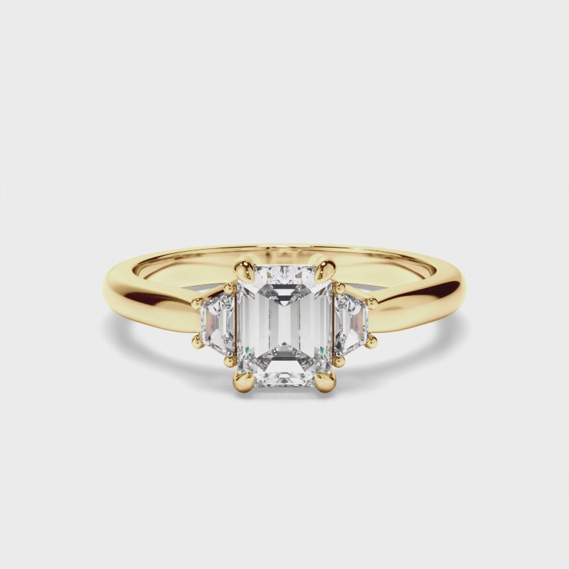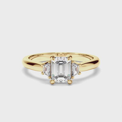 Emerald Cut Diamond Trilogy Engagement Ring with Baguette Sides