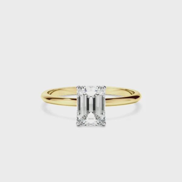This timeless custom-made engagement ring, made with your choice of diamond centre stone, features an emerald cut diamond with 4-claw solitaire setting. Exuding fluidity in its line work, and boasting an elegant silhouette, as with all the pieces in our Bespoke Collection, this piece is made especially for you.