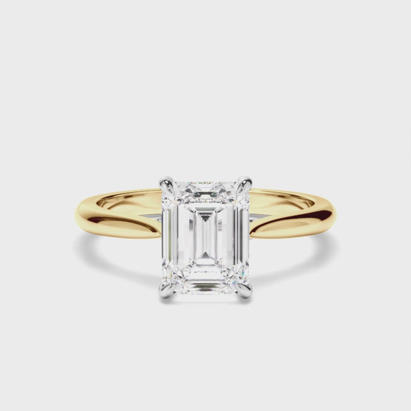 This timeless custom-made solitaire engagement ring, made with your choice of diamond centre stone, features an emerald cut diamond set in a classic half round band. Exuding fluidity in its line work, and boasting an elegant silhouette, as with all the pieces in our Bespoke Collection, this piece is made especially for you.