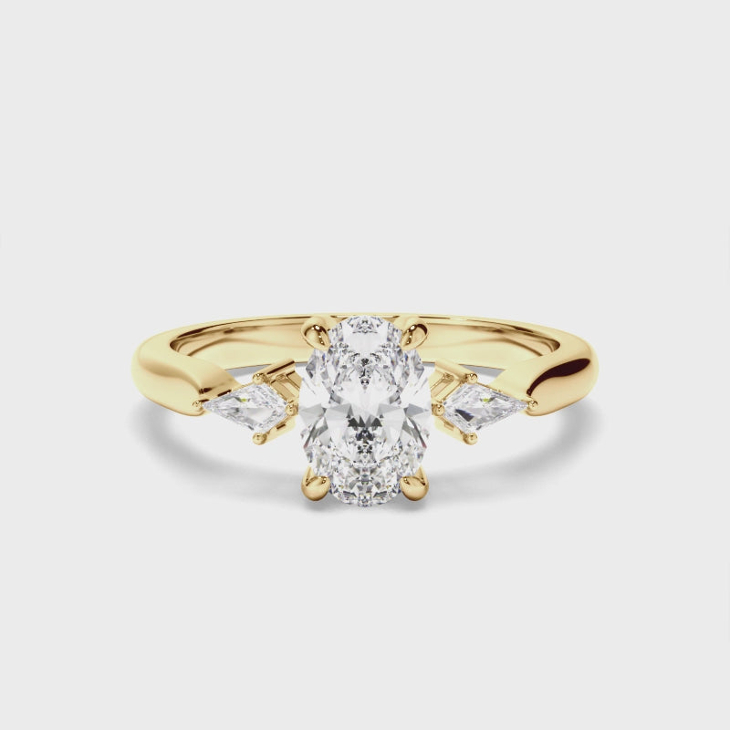 Oval Cut Diamond Trilogy Engagement Ring with Kite Sides