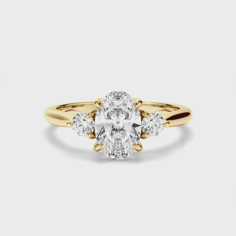 Oval Cut Diamond Trilogy Engagement Ring with Round Brilliant Sides