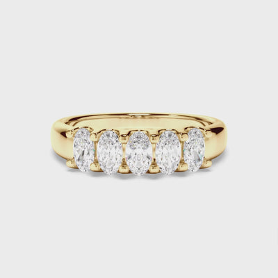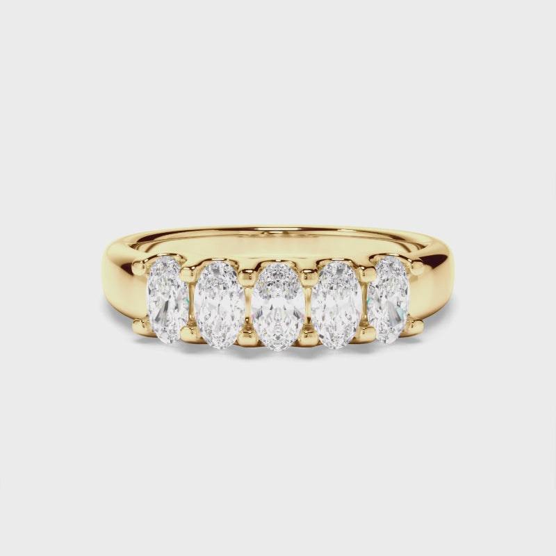 This stunning custom-made anniversary ring features five oval cut diamonds set on an 18ct gold or platinum band. Exuding fluidity in its line work, and boasting an elegant silhouette, as with all the pieces in our Bespoke Collection, this piece is made especially for you.