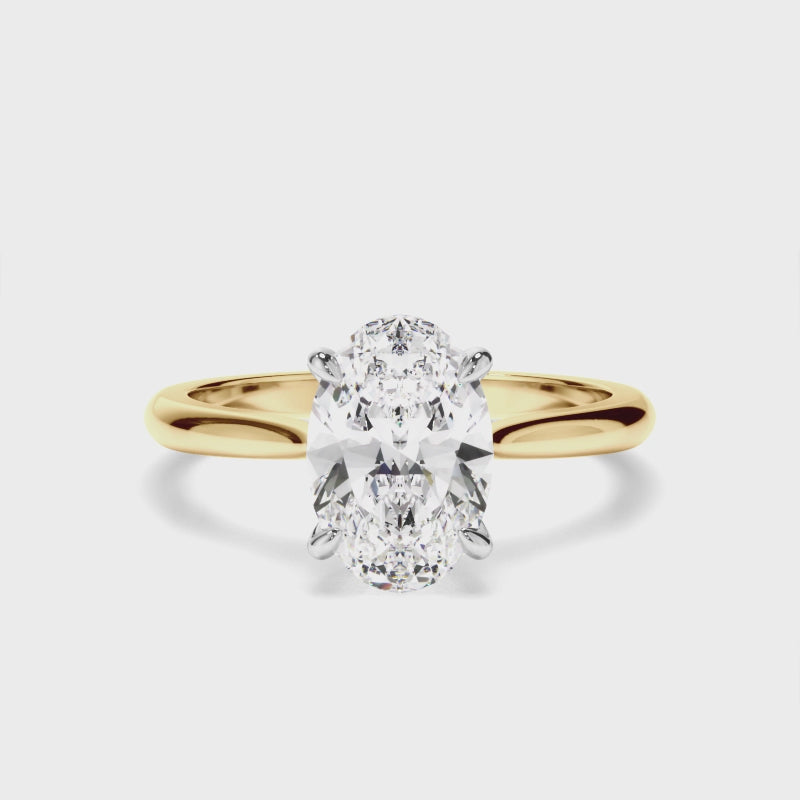This timeless custom-made solitaire engagement ring, made with your choice of diamond centre stone, features an oval cut diamond set in a classic half round band. Exuding fluidity in its line work, and boasting an elegant silhouette, as with all the pieces in our Bespoke Collection, this piece is made especially for you.