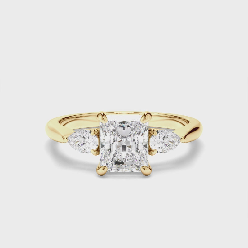 Radiant Cut Diamond Trilogy Engagement Ring with Pear Sides