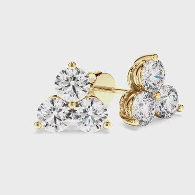 Round Brilliant Cut Diamond 3-Stone Stud Earrings