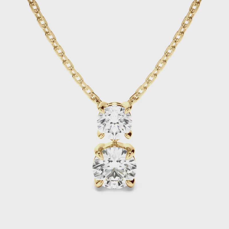 This elegant round brilliant cut diamond drop pendant features a 1.00ct round brilliant cut diamond set below a 0.50ct round brilliant cut diamond. Exuding fluidity in its line work, and boasting an elegant silhouette, as with all the pieces in our Bespoke Collection, this piece is made especially for you.